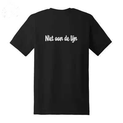 Daarnaast heeft deze t-shirt een leuk verrassingsdetail: op de achterkant van het shirt staat “Niet aan de lijn”.